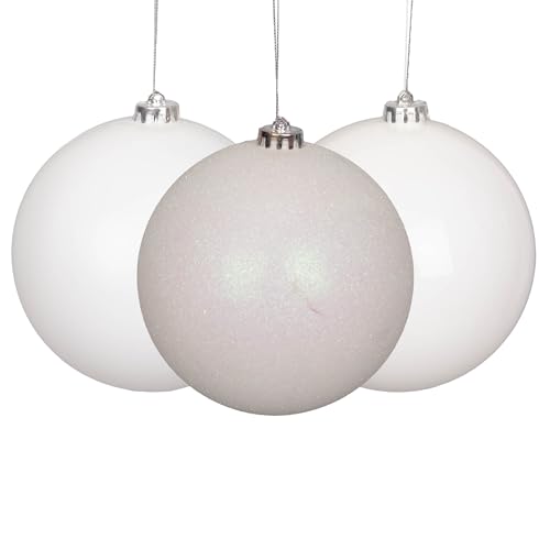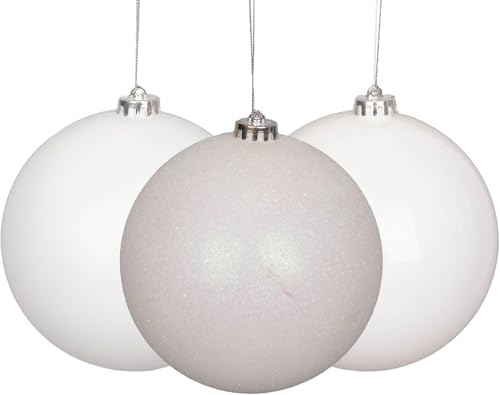 25 cm/3 st stora vita julgranskulor PVC okrossbar glansig, matt, glitterfinish julbollar prydnader blandade set – festliga julgranshängande dekorationer, rund prydnad för semester heminredning