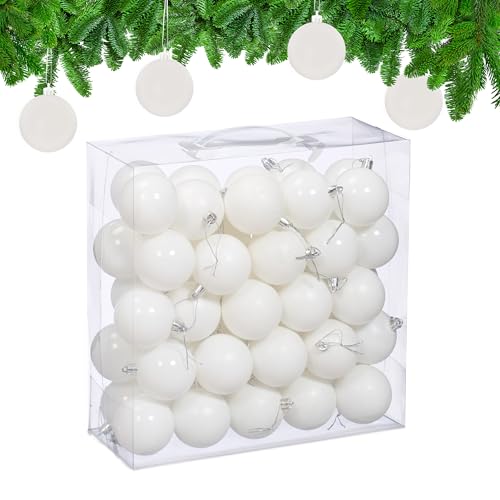 Relaxdays Julgranskulor i set om 50, plast, D: 6 cm, rund julgransdekoration, träddekorationer okrossbara, vita