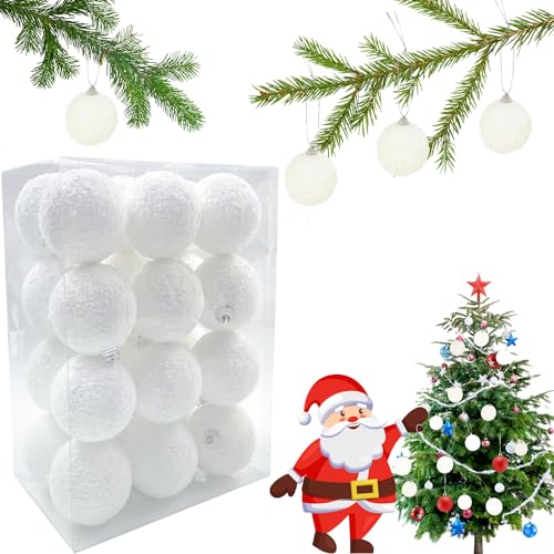 Julkulor, julgranskulor, vita, 24 stycken julkulor, ornament, julgran, hängande dekoration för julgran, dekoration, julskumkulor, ornament