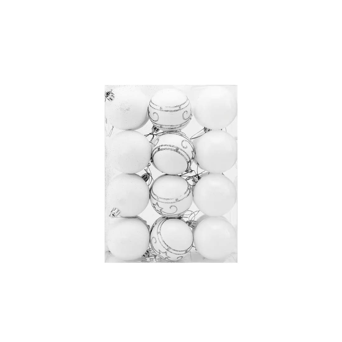 Uppsättning av 16 julgranskulor, vita glas, 8 cm – matt och glänsande, festlig juldekoration