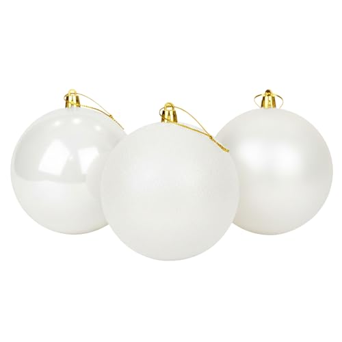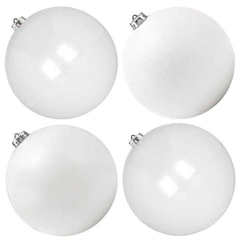 Benjia Extra stora julgranskulor, gigantiska okrossbara julgranskulor i plast för utomhusbruk, kan användas på gräsmatta, gård, i träd och som hängande dekorationer (15 cm/150 mm, 4-pack, vita)