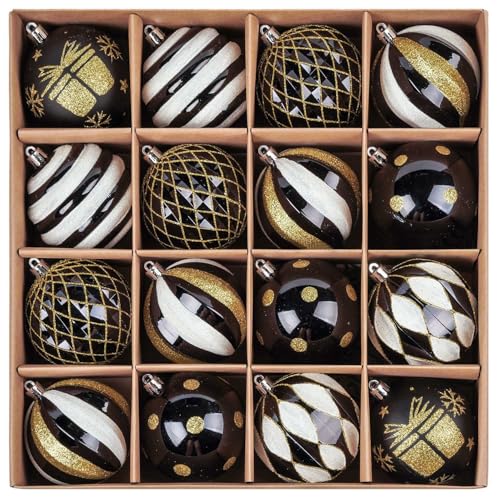 SVNVIOZ Svart guld vit julgranskulor dekorationer, 16 st 8 cm julgranskula prydnadsset, julgransdekorationer okrossbara julbollar för julgransdekoration