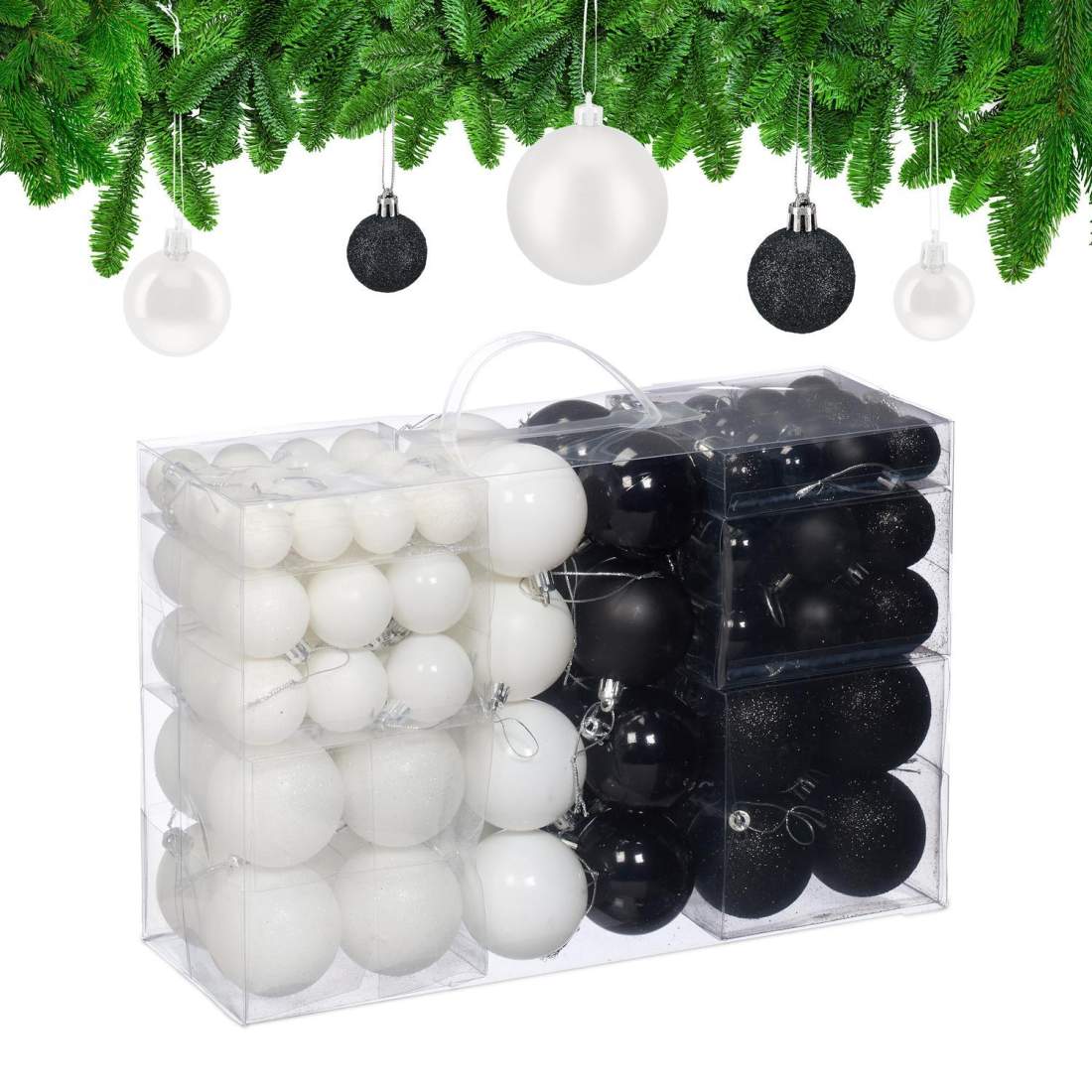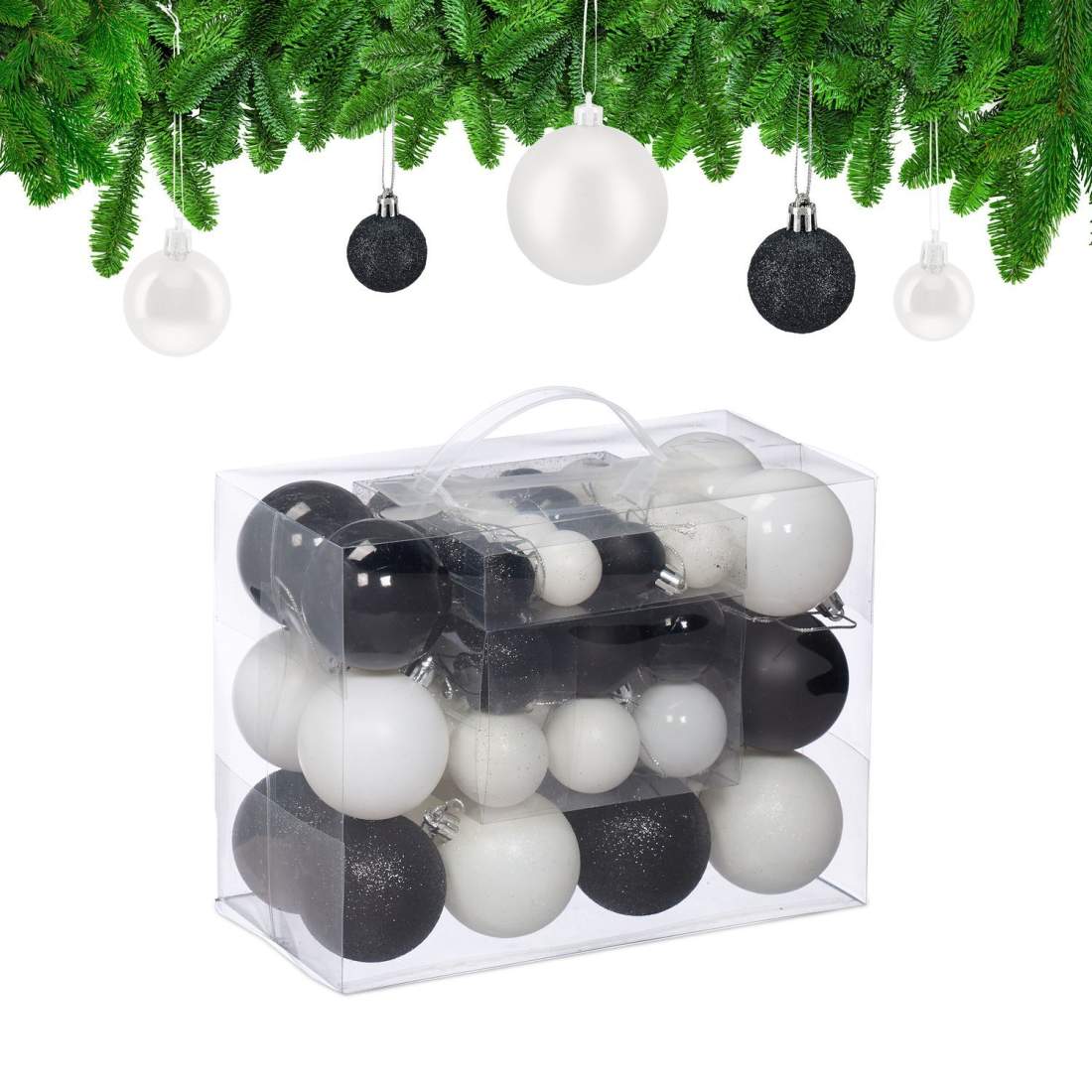 Set med svarta och vita julgranskulor – olika ytbehandlingar