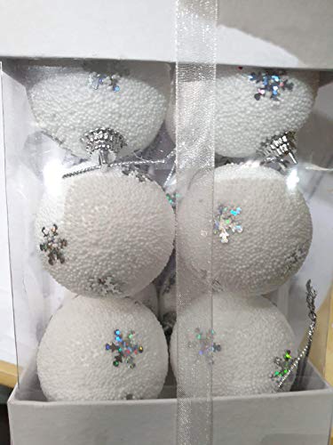 SHATCHI 12 x jul hängande julgranskulor mjukt skum glittrande okrossbara hänge ornament julgran bordsdekorationer 4cm Vitt