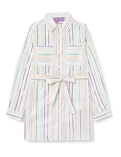 myMo KIDS skjortblusklänning för flickor, långärmad klänning, Vita flerfärgade ränder, 122