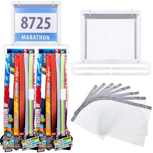 Moxweyeni Medalj- och nummerlappshållare, hängare för medaljer, väggmonterad, fin present till löpare (vit, 33 x 30 cm, klassisk)