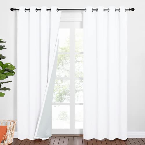 PONY DANCE värmeisolerande och kylavstötande gardiner - totalt mörkläggande, ljudabsorberande, termiska interiörgardiner i tre lager med öljetter, 2 st, 132 x 213 cm, kritvit