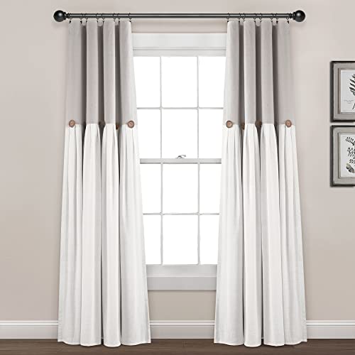 Lush dekor linne knapp 100% fodrad mörkläggningsfönstergardinpanel, enkel, 102 cm B x 213 cm L, grå och vit - mörkläggningsgardiner - färgblock - bondgårdsgardiner för sovrum, vardagsrum och matsal