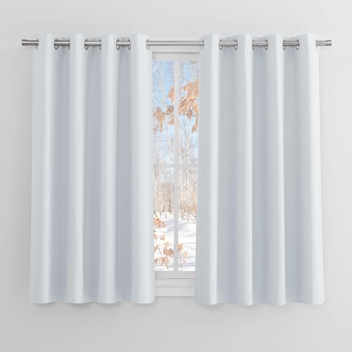 PONY DANCE Vita mörkläggningsgardiner för sovrum, värmeisolerade gardiner 137 cm (54 tum), hängande mörkläggningsgardiner med öljett för mörkläggning av rummet, mörkläggning för små fönstergardiner, 2