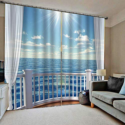 NBVGHJ Personliga mörkläggningsgardiner 3D blå himmel vita moln solsken fönster gardin vardagsrum balkong draperier dekoration (W) 180 × (H) 200 cm
