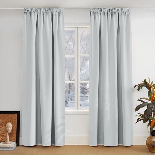 Deconovo Termiska mörkläggningsgardiner för vardagsrummet med rynkband, 210x140 cm (höjd x bredd), grå och vit, uppsättning med 2