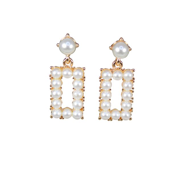 Complement Smår Rektangulära Örhängen Med Vita Pärlor Guld