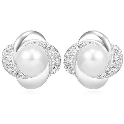 jiamiaoi Eleganta pärlörhängen för kvinnor flickor pärldroppörhängen, silverpärlörhängen katt sötvattenspärlor örhängen knoppar, vita pärlörhängen allergivänliga örhängen för kvinnor, Pearl Sterlingsilver, Pärla