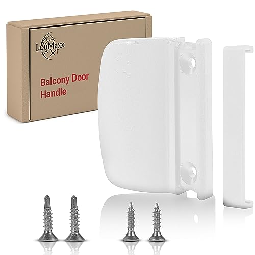LouMaxx Balkongdörrhandtag på utsidan för platsbesparande montering mellan dörr och rullgardin. 1 set för terrassdörrhandtag i vitt inkl. skruvar (dolt) – draghandtag med skruvlock