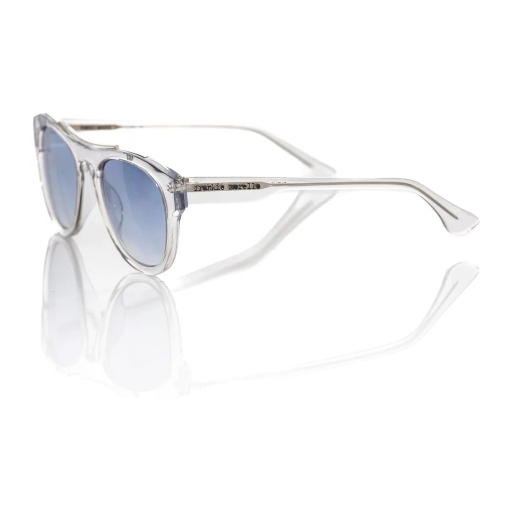 Frankie Morello, Accessoarer , Herr, ONE Size, Vita Wayfarer Solglasögon med Blåa Linser