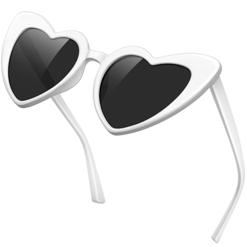 KANASTAL Klassisk Vintage Retro Överdimensionerat Hjärta Solglasögon Vita Tjocka Kvinnor Dam Women Herr Män Trendig UV400 Heart Shaped Sunglasses White för Fest Bröllop Dagligt Slitage