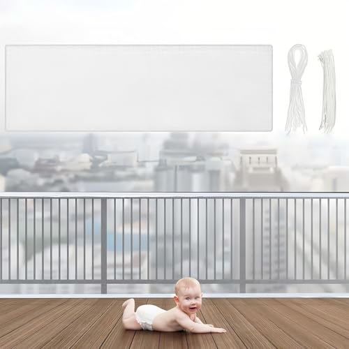 FAINCA 300 x 79 cm Barnskyddsnät, Balkongnät, Trappskyddsnät, med Nylon Snodd och Långt Spännband för Balkong Barntrappa Balkong (Vit)