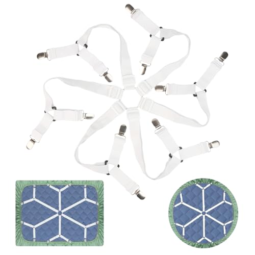 TPTGIAR Lakanspännare justerbar, 6 sidor lakan spännband, lakan spännremmar med metallklämmor, elastisk spännare för lakan, dra-på-lakan för madrass soffa (vit)