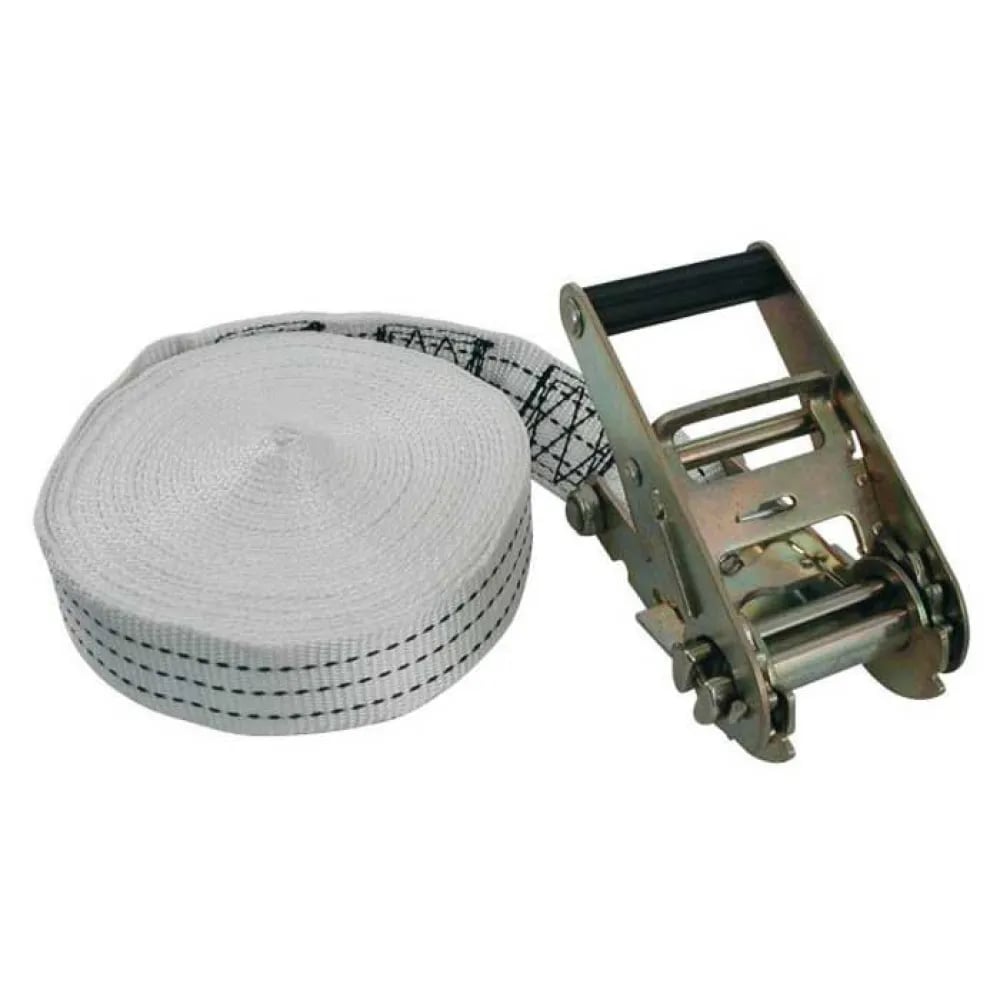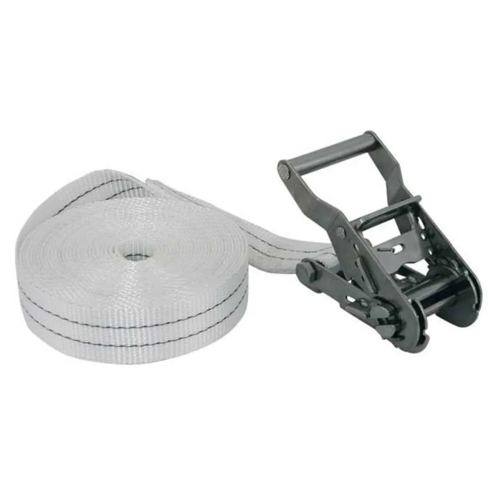 Förankra Spännband med ögla Fixolina, 2-delad, 25 mm x 5 meter (4.5 + 0.5 meter), 400 daN / 405 kg (LC), spänne i rostfritt stål, vit