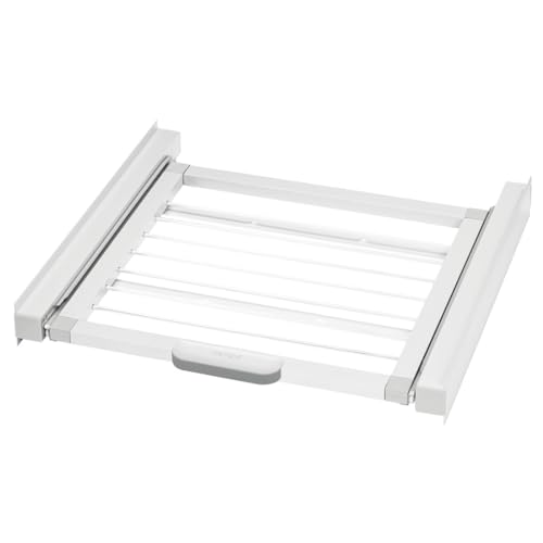 Xavax mellanbyggsats med utdragbar platta av metall (universell anslutningsram för tvättmaskiner och torktumlare, mellanram med utdrag som förvaring för tvättkorg, inklusive spännband) vit