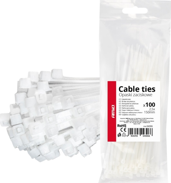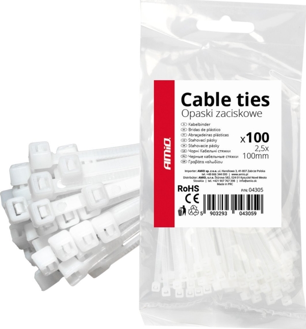 Spännband Vit 2,5×100Mm 100 St Amio-04305