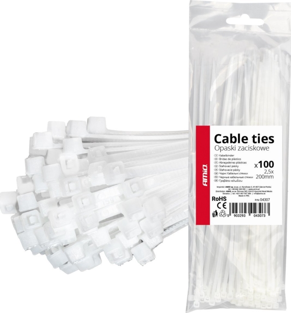 Spännband Vit 2,5×200Mm 100 St Amio-04307