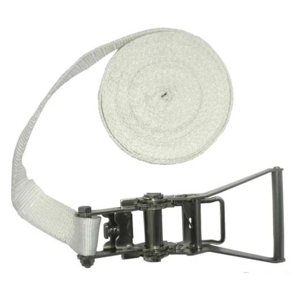 Förankra Spännband med ögla Fixolina, 2-delad, 35 mm x 5 meter (4.5 + 0.5 meter), 1000 daN / 1015 kg (LC), spänne i rostfritt stål, vit