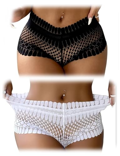 comeondear Brasilianska trosor damer sexiga trosor spetstrosor hipster för kvinnor trosor kvinnor ihålig ut sträng 1/2-pack stringtrosa stora storlekar underkläder, Vit, 3XL-4XL stor