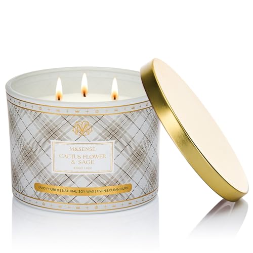 M&SENSE Doftljus stor kaktusblomma och salvia | 330 g naturligt sojaljus | 65 timmars brinntid | rutig design doftljus gåva | elegant stearinljus gåva
