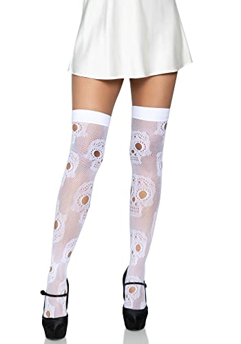 Leg Avenue Dam sockerskalle nät lårhöga strumpbyxor, Vit, en storlek