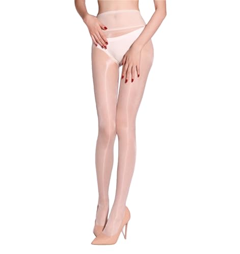 GOCBOBO Sömlösa strumpbyxor dam 5 DEN glänsande genomskinliga hög midja strumpbyxor, Vit, one size