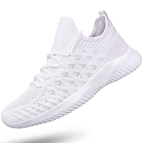 Feethit Dam Slip On promenadskor halkfria löparskor andningsbara träningsskor lätta gym sneakers, Vitt, 40.5 EU