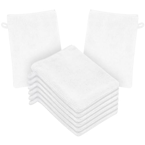 HOTUT 8-pack mikrofiber kroppstvättvantar, 15 x 20 cm flaneller mjuka duschvantar, ansiktsrengöringsvantar, mjuk ansiktsvante, bad SPA-duk, återanvändbar sminkborttagare vantar (vit)