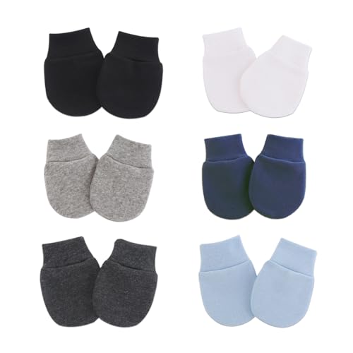 WeddHuis 6 par reptåliga bomullshandskar för 0–6 månader pojke och flicka (svart, vit, ljusblå, mörkgrå, grå, marinblå), 6 par vantar, M