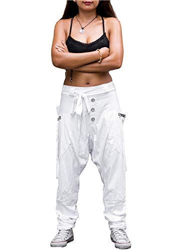 Thaluta Women's Harem Loose Yoga Travel Lounge Pants with Pockets Casual Boho White