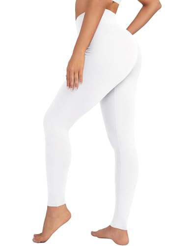 VALANDY Womens White Leggings Non See Through Tummy Control Leggings for Women High Waist Yoga Pants