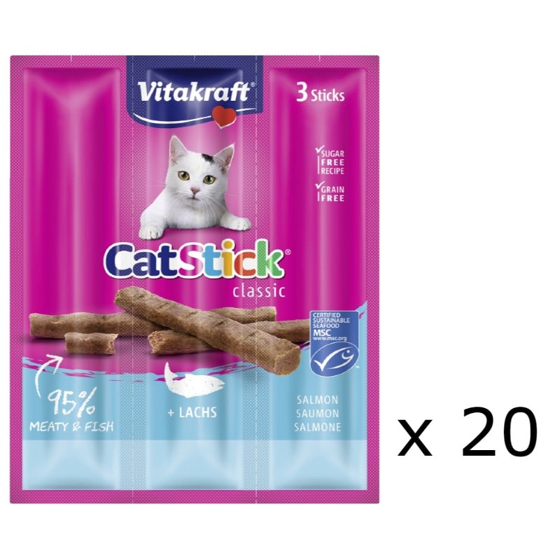 Vitakraft - Cat Treats - 20 x Cat Stick salmon MSC x 3 sticks - 18g (bundle)