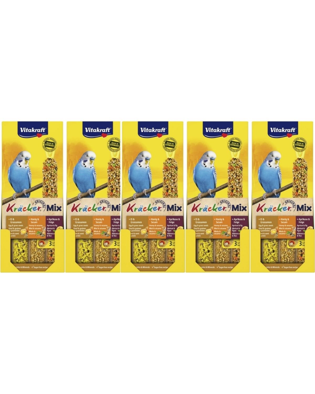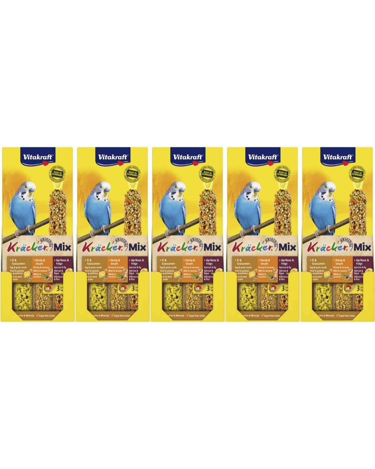 Vitakraft - Bird treats - 5 x Kräcker Mix Honey/fruit/egg for budgies (bundle)