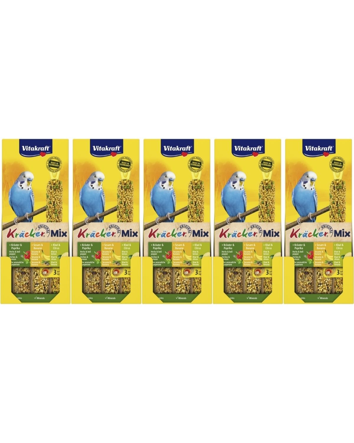 Vitakraft - Bird treats - 5 x Kräcker Mix banana/herbs/kiwi for budgies (bundle)