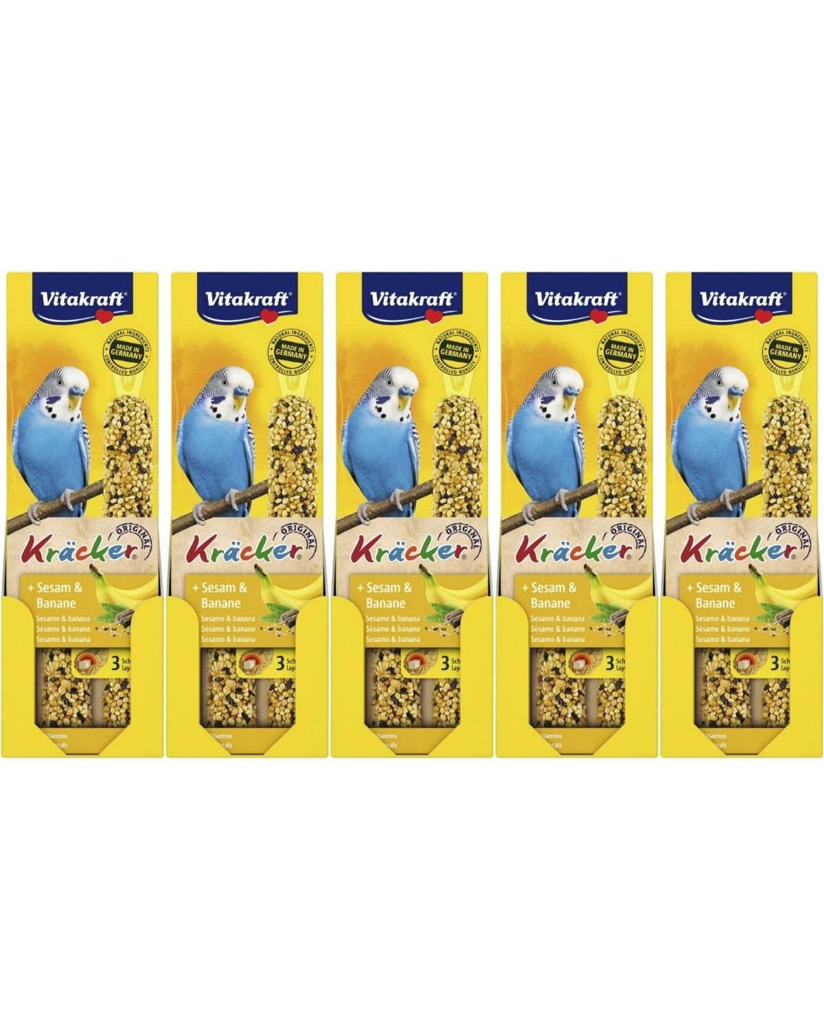 Vitakraft - Bird treats - 5 x Kräcker® banana and sesame, for budgies (bundle)