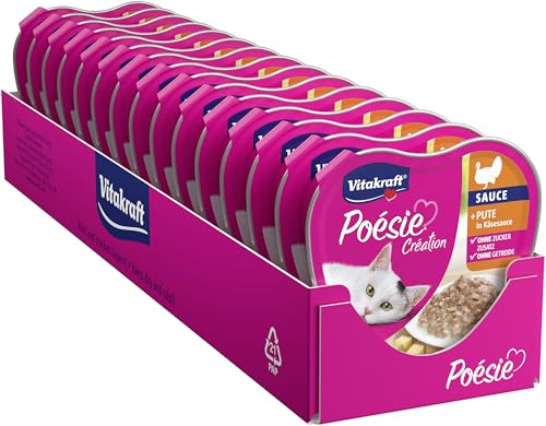 Vitakraft Poésie Création, kattmat, våt kattmat, med kalkon i ostsås, apt i fin sås, för vuxna katter, utan tillsats av socker och spannmål (15 x 85 g)