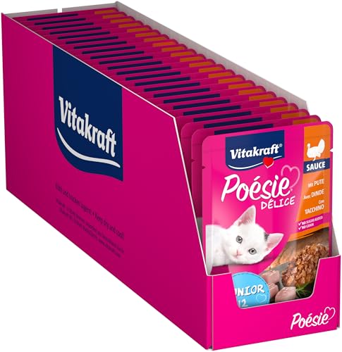 Vitakraft Poésie Délice, junior, kattmat våt, med kalkonbröst i sås, för unga katter, näringsfysiologiskt koordinerad, utan tillsats av socker och spannmål (23 x 85 g)