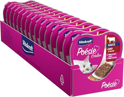 Vitakraft Poésie Création, kattmat våt, med nötkött, med morot, aptitretare i fin sås, för vuxna katter, utan tillsats av socker och spannmål (15 x 85 g)