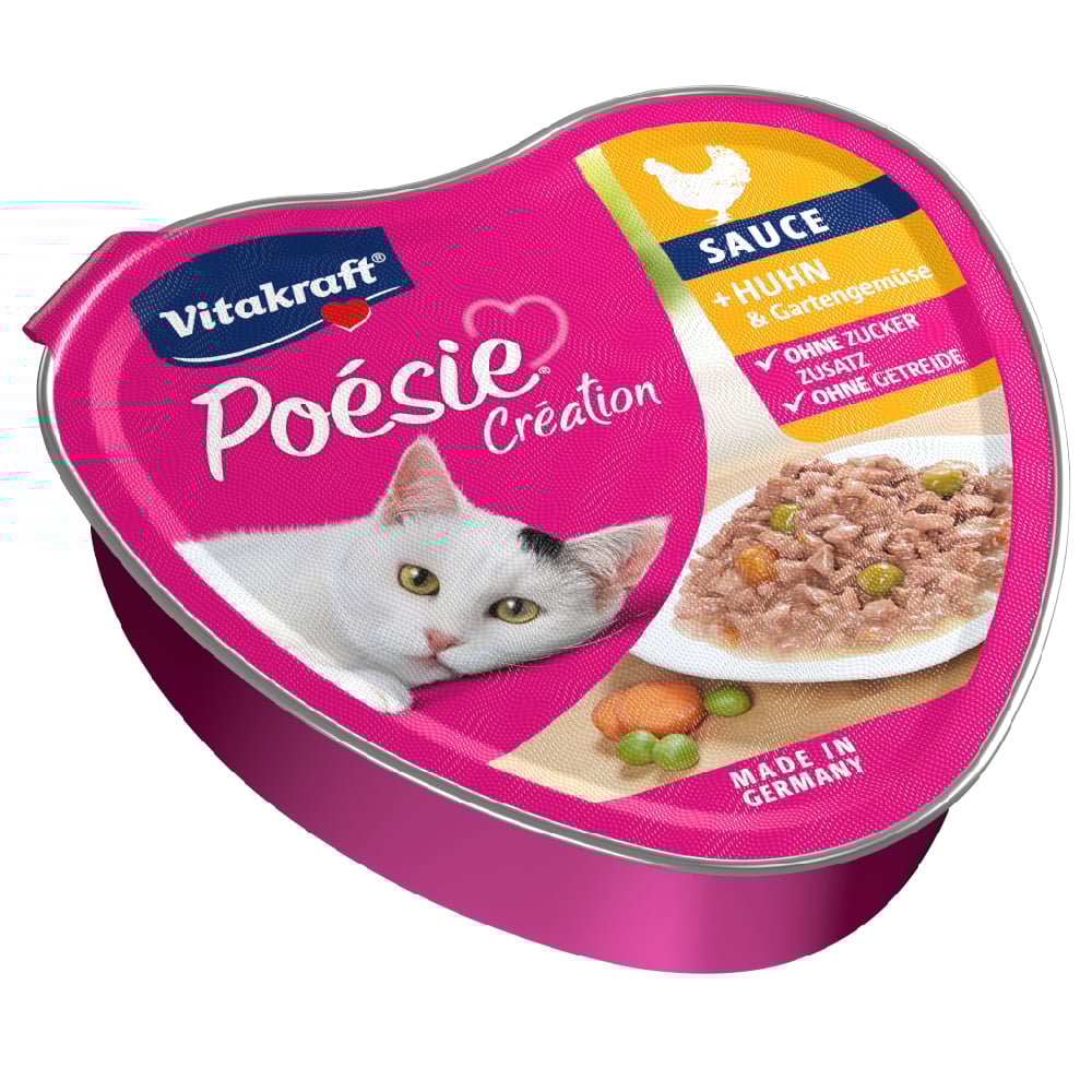 Vitakraft Poésie Création, kyckling och trädgårdsgrönsaker, i sås, kattmat våt, för vuxna katter, utan tillsats av socker och spannmål (15 x 85 g)