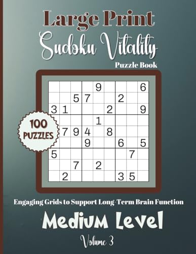 Large Print Sudoku Vitality-Engaging Grids to Support Long-Term Brain Function: 100 Medium Level Puzzles Volume 3: 8.5x11 Glossy Cover: Solutions Included