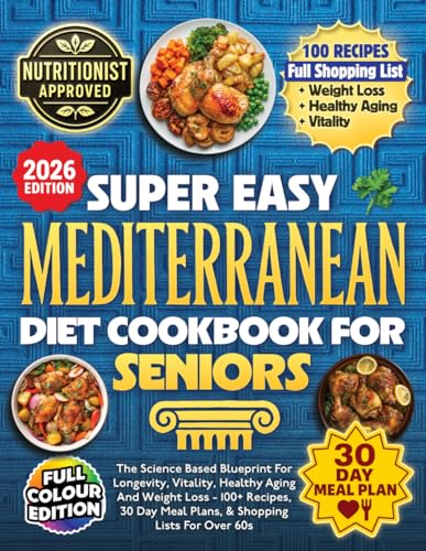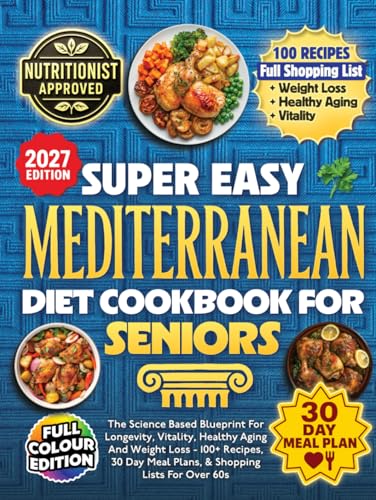 Super Easy Mediterranean Diet Cookbook For Seniors: The Science Based Blueprint For Longevity, Vitality, Healthy Aging And Weight Loss - 100+ Recipes, 30 Day Meal Plans, & Shopping Lists For Over 60s
