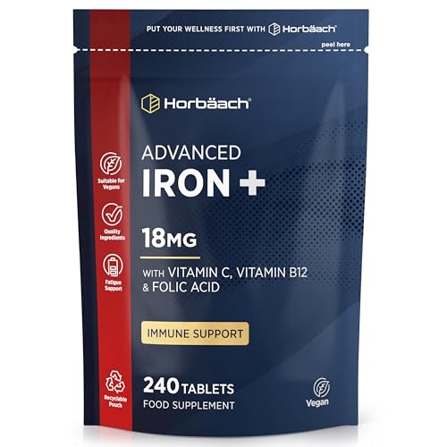 Järntabletter 14mg | 180 Tabletter Veganska | Komplex med Folsyra och Vitamin B12 | Iron Complex | av Horbaach