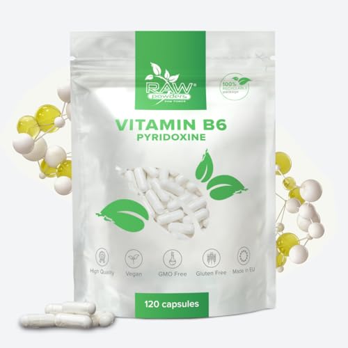 Pyridoxine (Vitamin B6) 100mg, 120 Kapslar – Stöd för energiomsättning, nervsystem och immunsystem – Rena ingredienser, GMO- och glutenfria, GMP-certifierat kosttillskott från Raw Powders