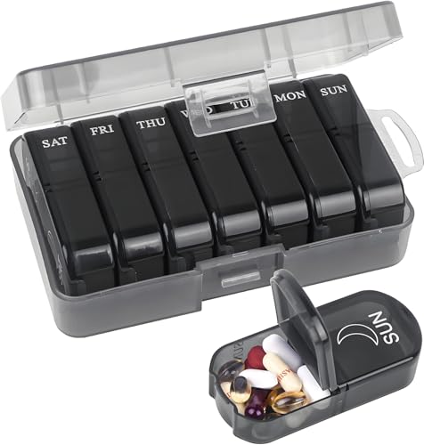 KedioPio Pill Organizer, Dosett 7 Dagar Morgon Kväll Medicin Dosett, Stor Pillerburk Pill Box Pillerask Pillerlåda Piller Organizer för Resa med 14 Fack att Hålla Daily Piller och Vitamin, Svart