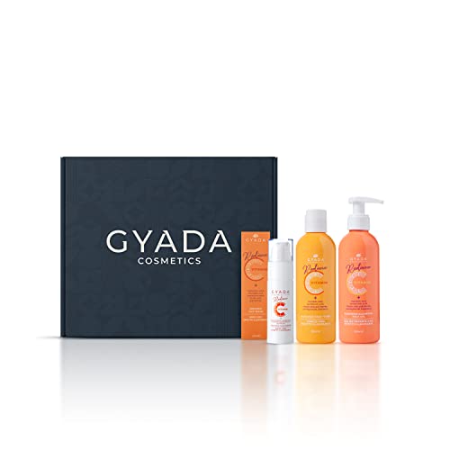 GYADA COSMETICS, STAY GLOW BOX, ansiktspresentset med 3 produkter med vitamin C med lysande verkan, exfolierande och antioxidant för alla hudtyper, hudvård rutin blekt och matt hud